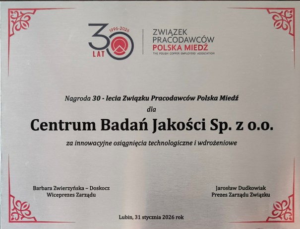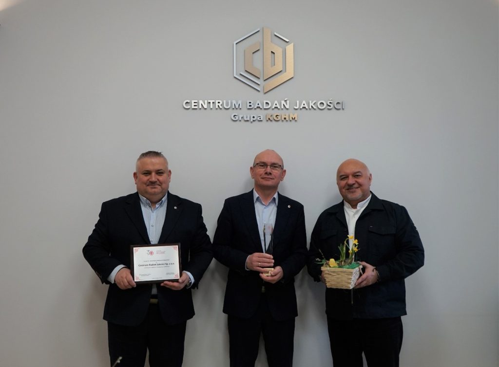W dniu 25 marca Zarząd CBJ sp. z o.o. odebrał wyróżnienie przyznane przez Prezesa Związku Pracodawców Polska Miedź – Pana Jarosława Dudkowiaka.